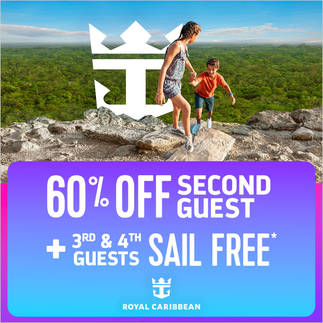 Your clients will score 60% off their second guest and their 3rd & 4th guests sail free of charge too!