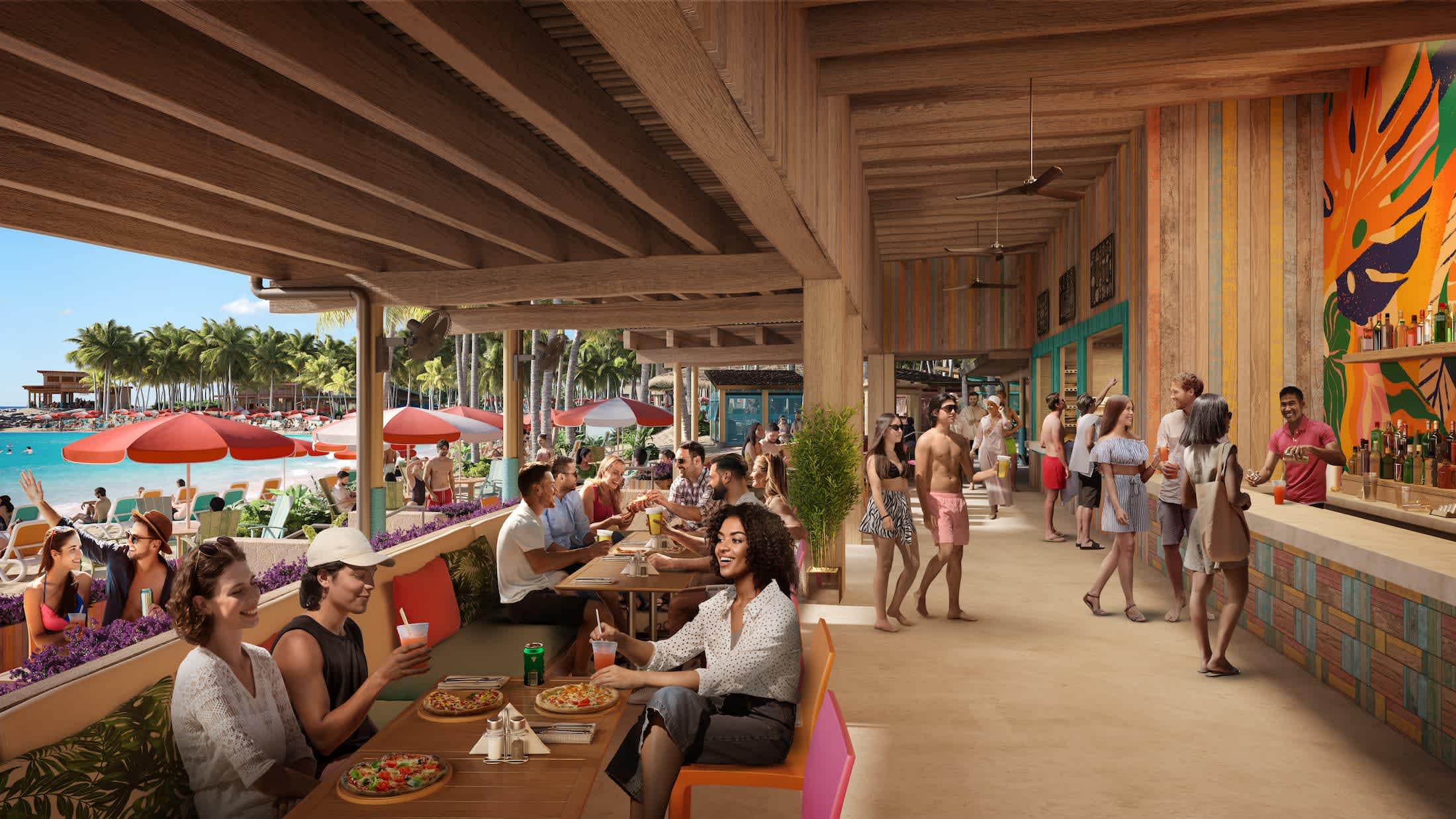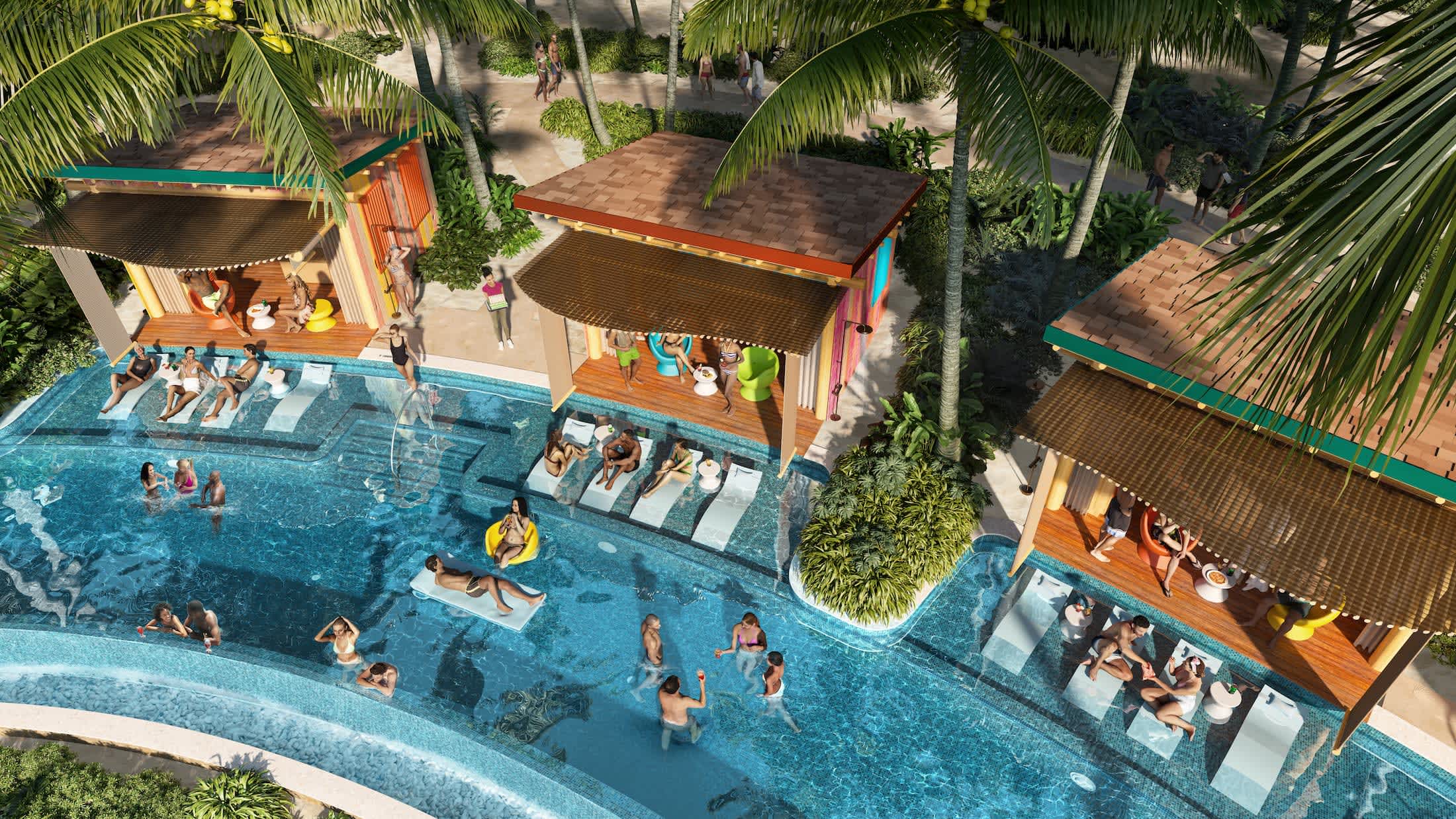 We're cranking the party vibe way up. Your clients can dance to sun-soaked DJ sets by the swim-up bar. Switch up the tempo and kick back poolside. And take their bar crawl to the tropics at five spirited spots serving refreshing drinks. So whether they cool off with an ice-cold draft at the beach bar or sip cocktails with live music and a view at On The Rocks, they'll have plenty of ways to shake things up.