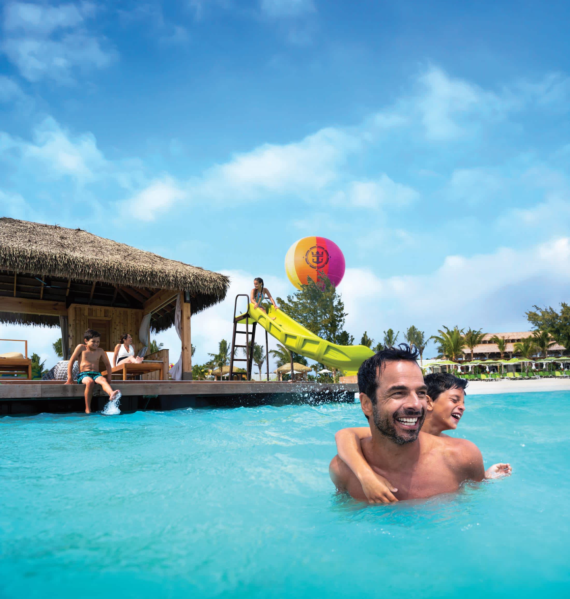 Experience Perfect Day at CocoCay, voted Best Private Island! Enjoy family fun at Splashaway Bay, relax on South Beach, and savor complimentary food. If you have a beverage package, enjoy unlimited cocktails. For thrills, conquer 14 slides at Thrill Waterpark and the Caribbean’s largest wave pool.