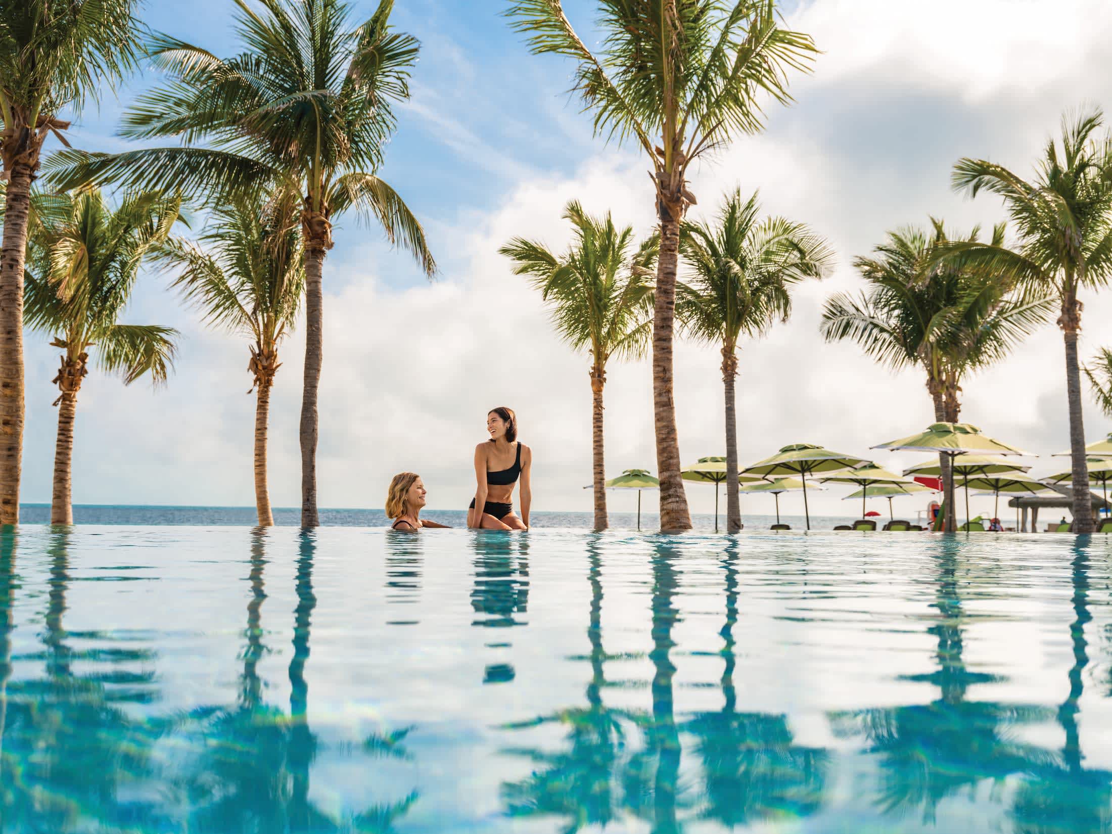 Drift along the finest line possible between poolside and seaside in an infinity pool overlooking the ocean. Relax in a private beach cabana. Or kick back in an overwater hammock and splash into the sea on a private slide from the first Overwater Cabanas in The Bahamas. Plus enjoy all the premium amenities of the clubhouse— like upgraded dining, signature cocktails, poolside drink attendants and cabana concierge service.